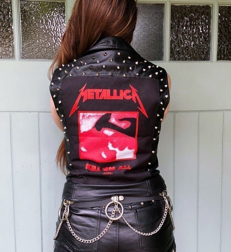 Metallica Black Leather Studded Battle Vest Jacket Jackets Maker
