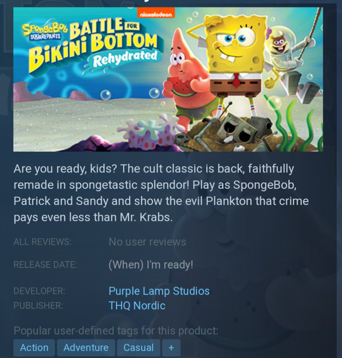 Spongebob Squarepants Battle For Bikini Bottom Rehydrated Release Date Steam